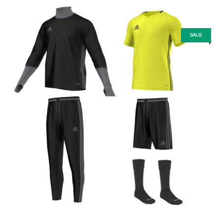 Eksempelvis dette 5-delte træningssæt til børn til 1100 kr (plus 100 kr ved navne tryk)